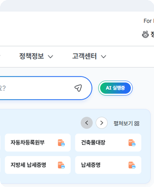 홈페이지에서는 검색창을 통해 필요한 민원을 직접 찾거나, 분야별 메뉴를 통해 생활·세금·복지 등의 정보를 탐색할 수 있습니다. 사용자 맞춤형 서비스도 제공되어 개인 상황에 맞는 혜택이나 행정 정보를 확인할 수 있습니다.
